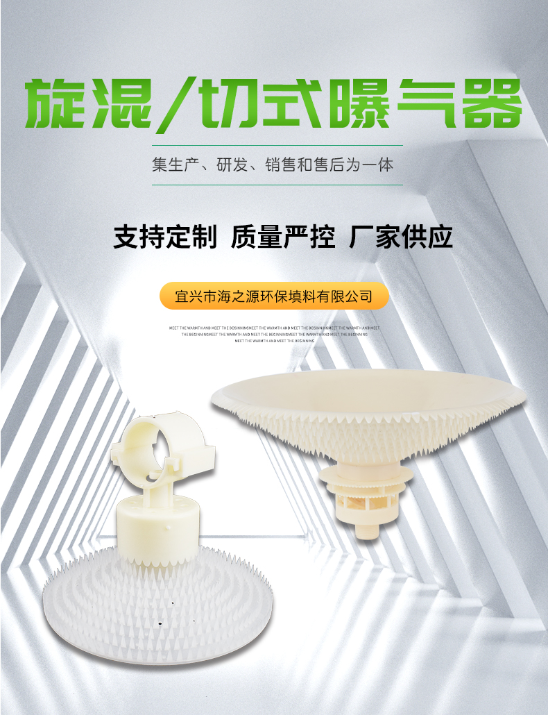 旋混式曝氣器采用多層螺旋切割的型式進行充氧曝氣,旋混式曝氣器當氣流進入260型混流型曝氣器時,氣流首先通過二道螺旋切割系統,切割后進入下層的的多層鋸齒型布氣頭,進行多層切割,使氣泡切割成微氣泡,這樣大大提高了氧的利用率,具有布氣均勻,充氧效率高的特點。